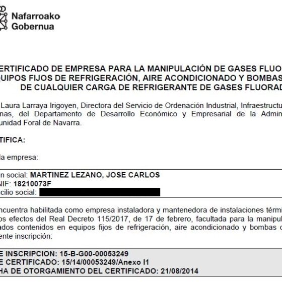 Contamos con todas las certificaciones oficales necesarias para garantizar una instalación de calidad y un respaldo adecuado a la normativa vigente